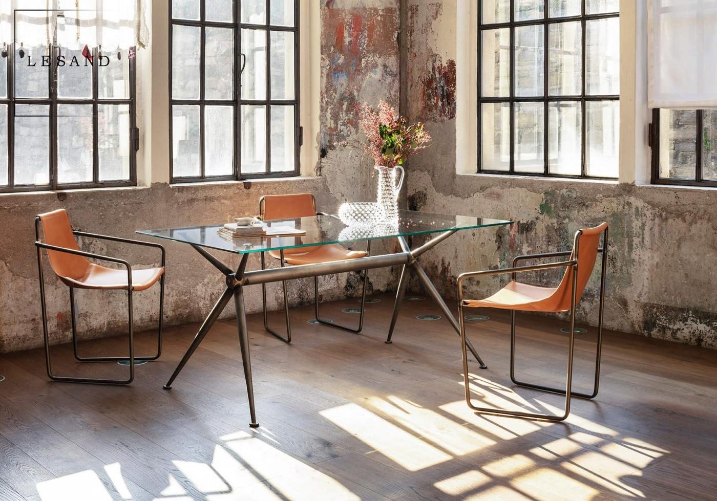 Стіл Briso доступний у виконанні з лакованої або хромованої сталі. Поверхня: скло або дерево.
