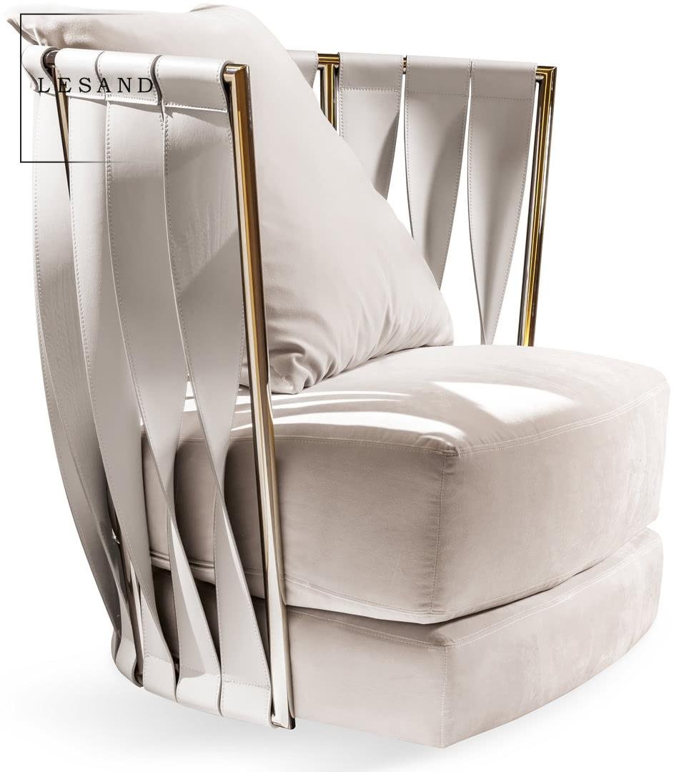 Вигнуту спинку крісла і дивана формує металевий каркас. До нього кріпляться смужки-ремені, які завдяки перекручення створюють ефект хвилі. Підстава сидіння виконано з тополі. Доступні такі обробки металевої рами: золото, латунь, чорний нікель, мідь. Замовник може вибрати матеріал оббивки (тканина, шкіру) і ременів (шкіру, еко-шкіру, нубуку, еконабука). В якості наповнювача декоративної подушки використано перо. Вибір кольору оббивки по каталогу виробника.
